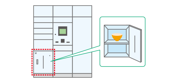 出前返却の器をフルタイムロッカーに返却いただけます。マンションの美観を損ねず、衛生的な環境保持に役立ちます。