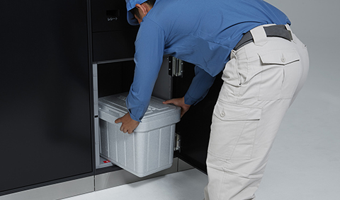 分譲マンション向けのスタンダードな宅配ボックスです。24時間いつでも荷物の受け渡しができるほか、クリーニングや宅配物の集荷発送など、さまざまなサービスと連動できます。