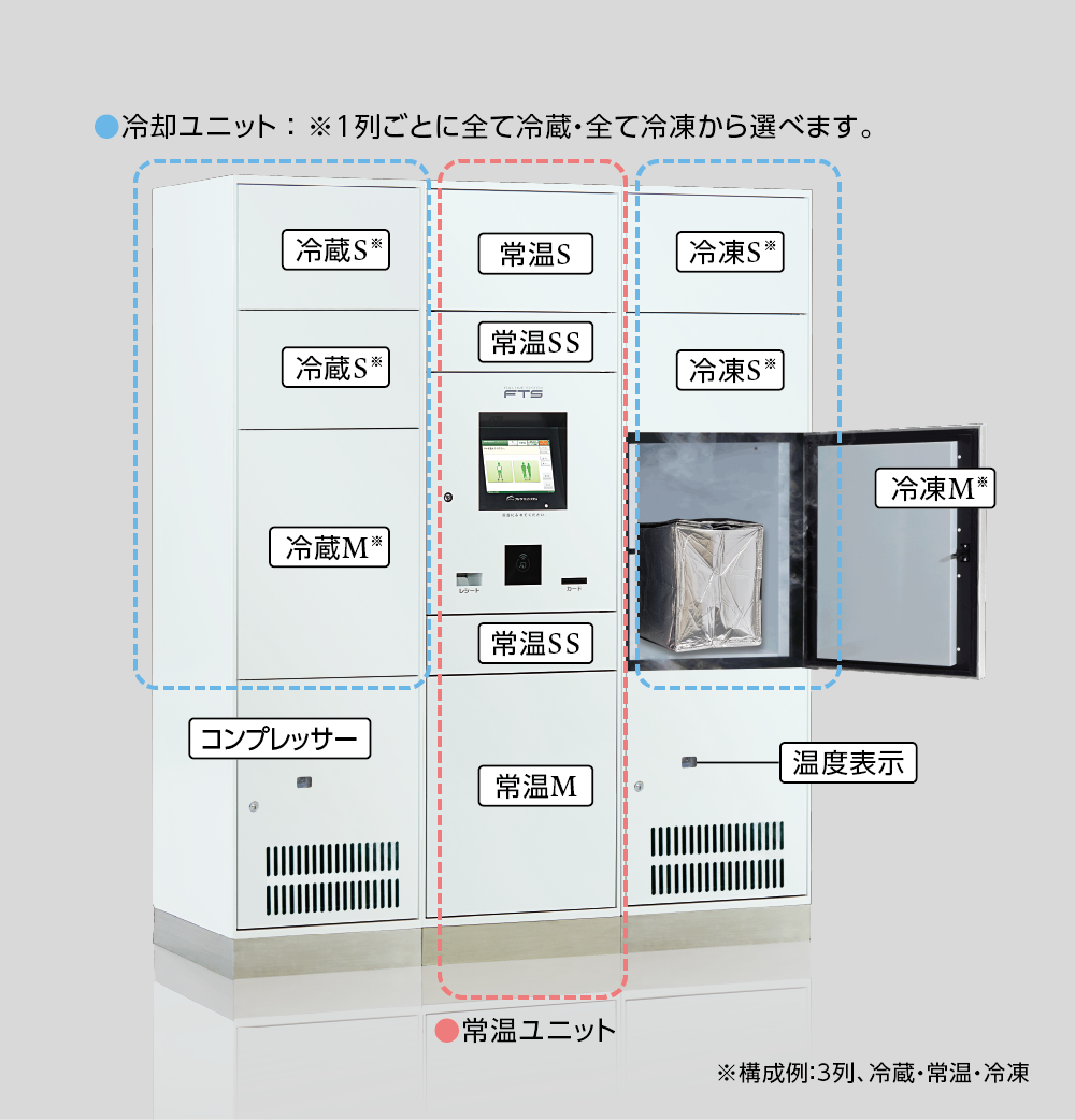 セキュリティの高いコンピュータ制御式の操作パネルと、頻繁に荷物が届く個人宅にも対応できる大容量設計で、集合住宅での安全で快適な荷物の受け渡しを実現する、冷蔵・冷凍機能付き宅配ボックス。